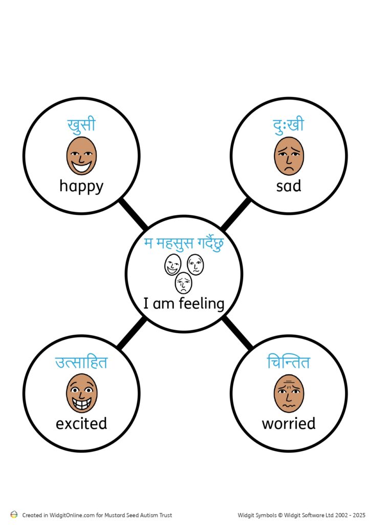 Dual language resource to help communicate different emotions.