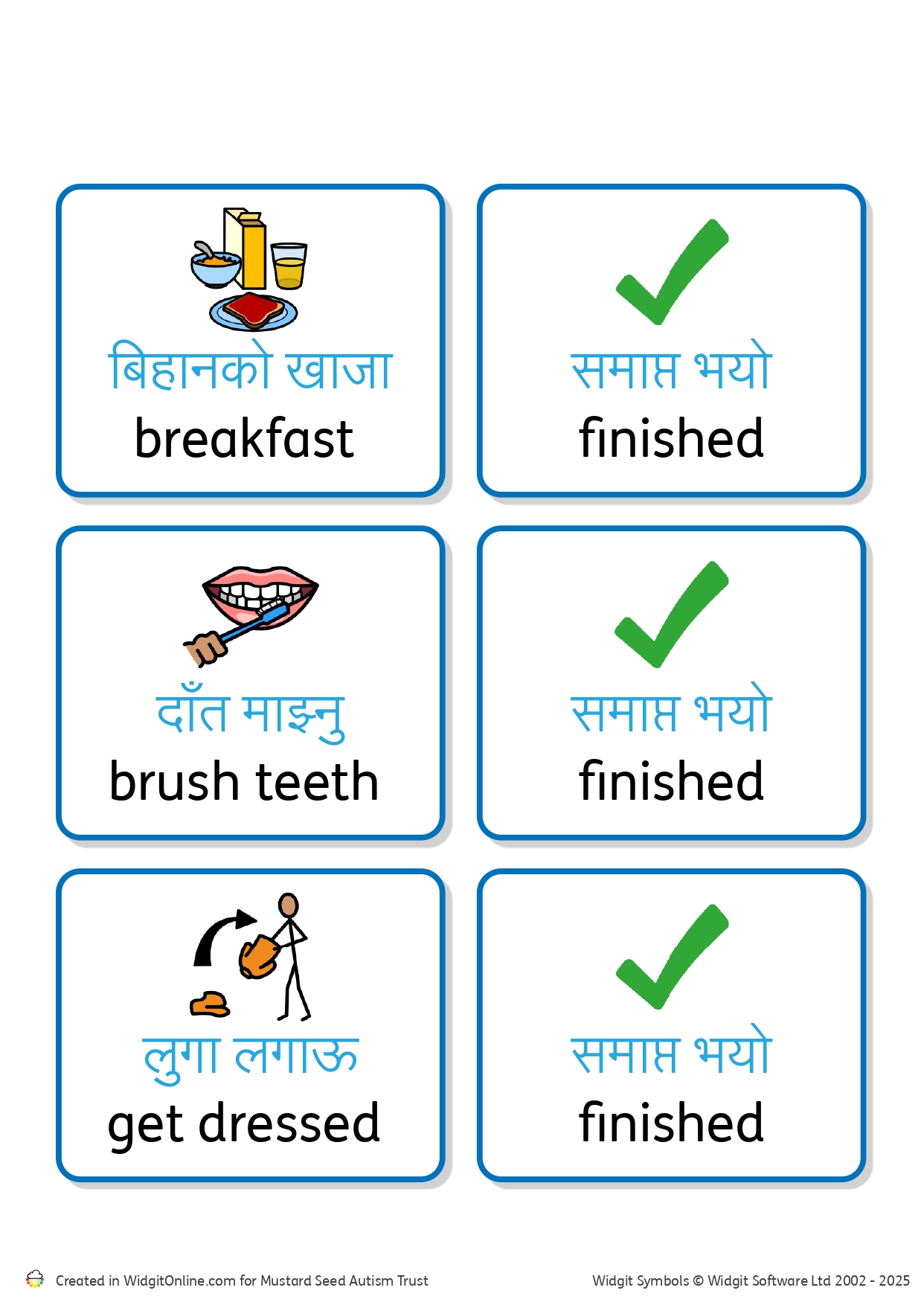 Dual language resource to support morning routines.